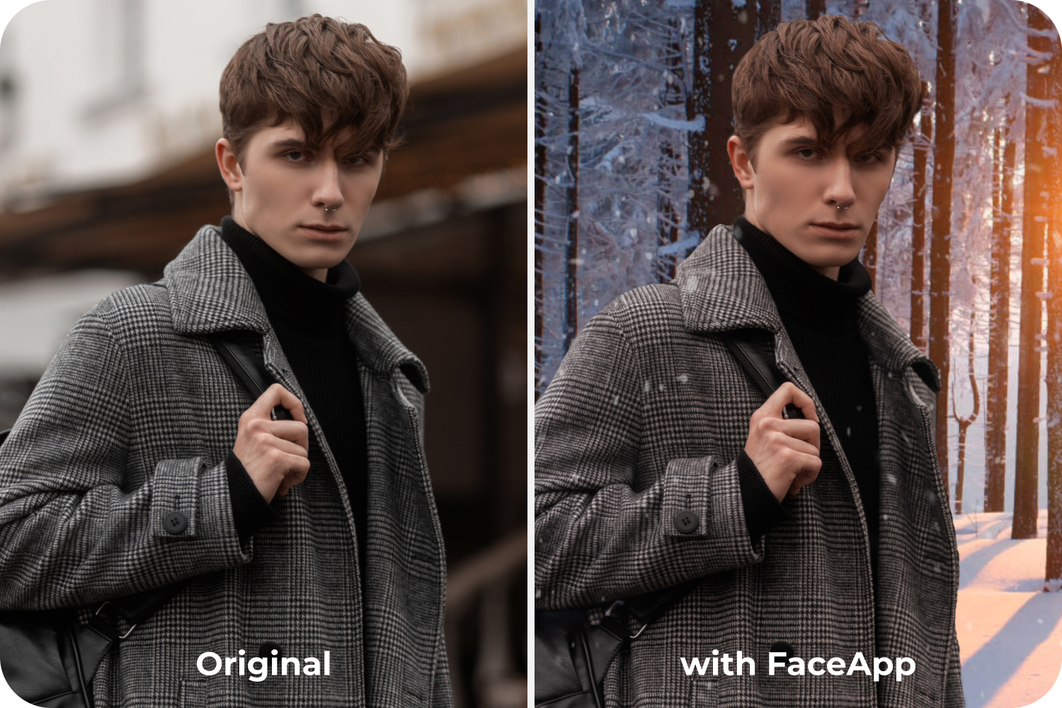 FaceApp makes this process simple and intuitive. Using FaceApp seasonal filters, users can adjust tone, color, and atmosphere to introduce a subtle winter feeling — without overwhelming the original image.